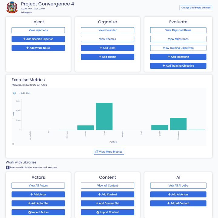 - Provides Command Teams easy to visualize exercise data and analytics from login to IP address and pages visited during the exercise